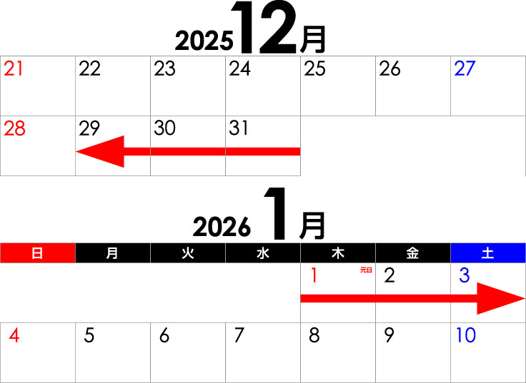 年末年始の休診は2025年12月28日から2026年1月4日までとなります。